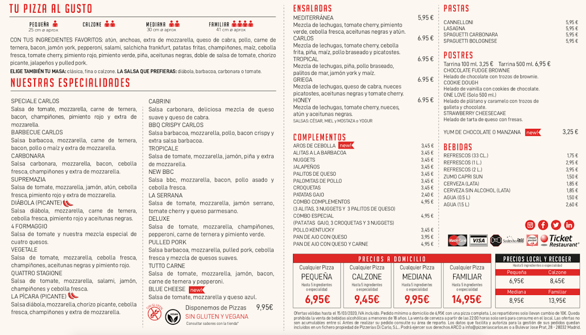 Introducing the Menu at Pizzeria Carlos - Latina